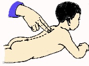 操作:用食、中二指腹或掌根自上向下直推,称推脊柱,