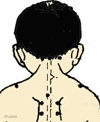 操作:以中指端轻按揉,或用拇指与食、中、无名等指作对称用力,捏挤大椎。按揉约100~300次,捏挤10~15次。
