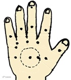 操作:用拇指端在大鱼际中点按揉,约揉200~400次。