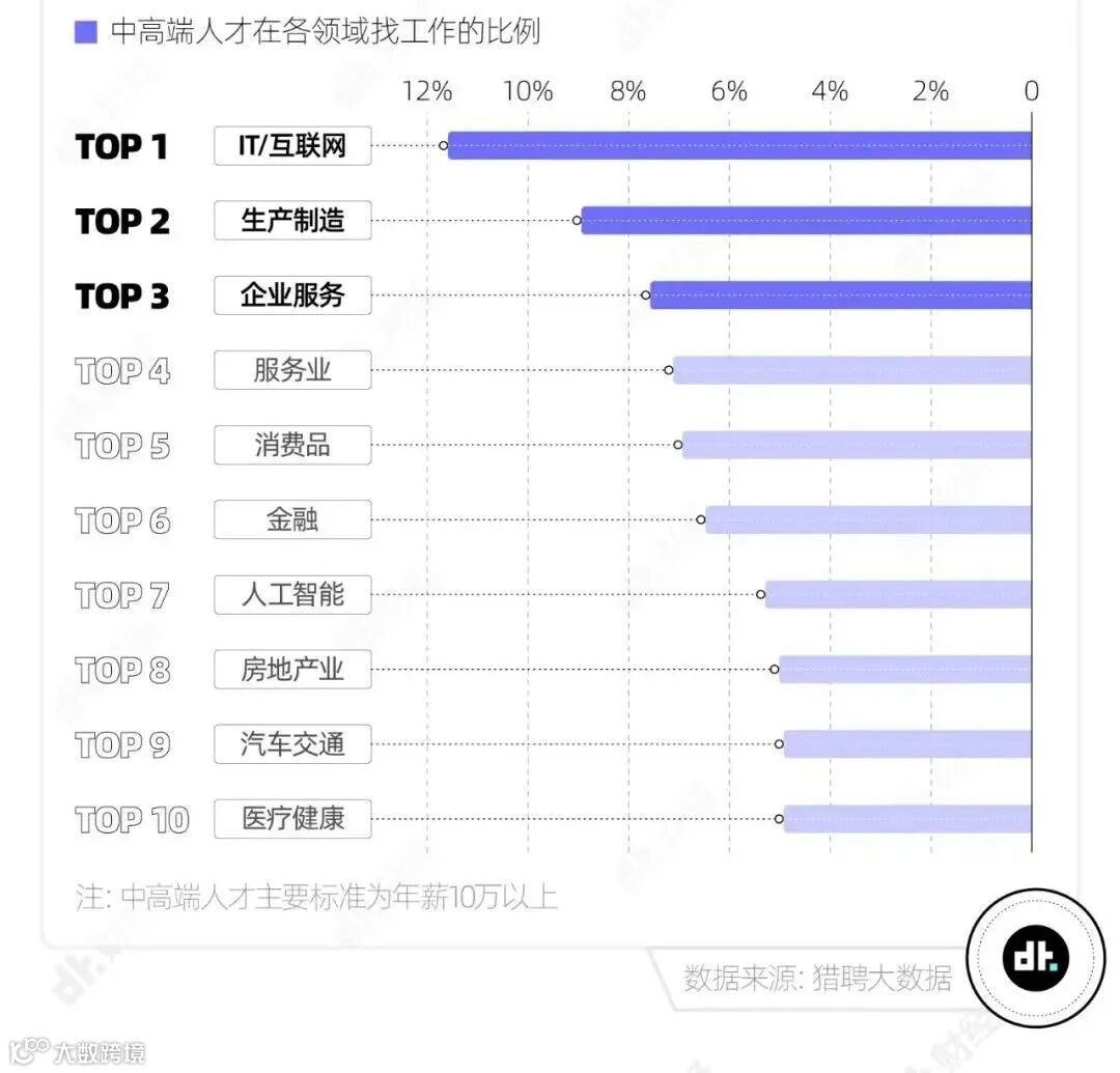 从中高端人才的行业选择来看,尽管大厂“祛魅”,但互联网行业热度不减。