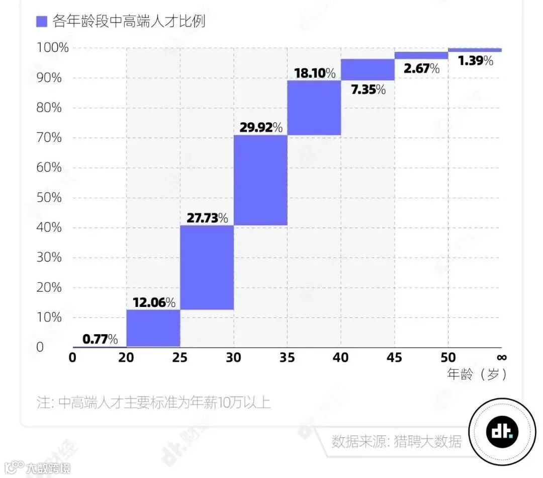 从年龄分布来看,35岁左右的职场人,是当下中高端人才招聘市场中最为活跃的人群。