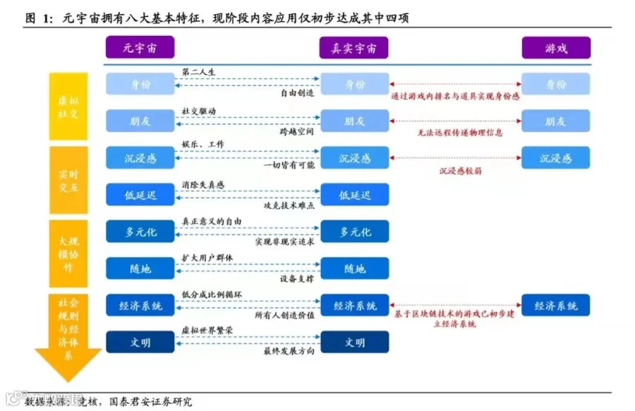 按照国泰君安研报,目前已有四项满足了元宇宙基本特征。