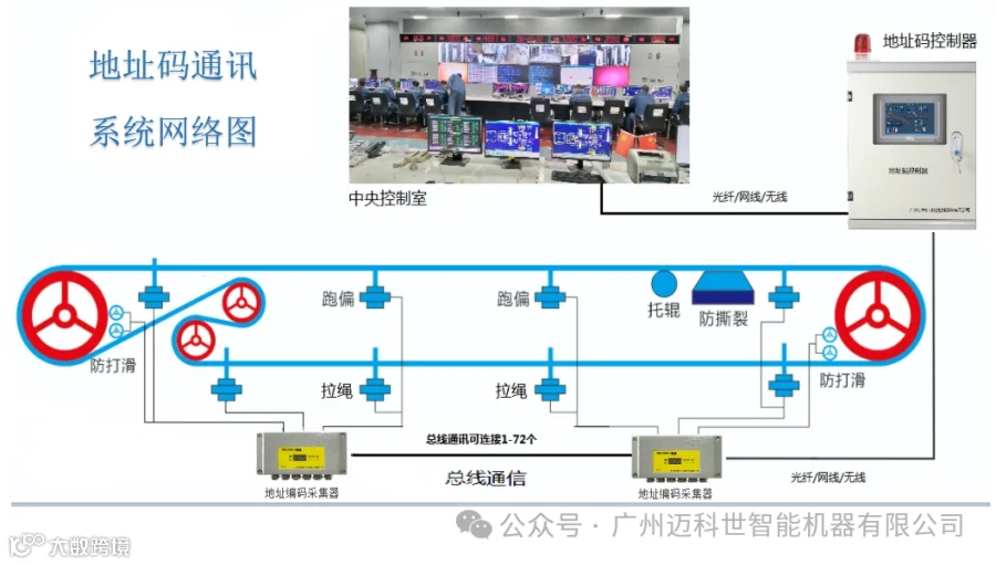 地址码控制器:在控制室中,通过地址码控制器可以实时监测皮带的运行状态,包括是否发生跑偏以及跑偏的位置,从而及时采取措施避免事故发生。
