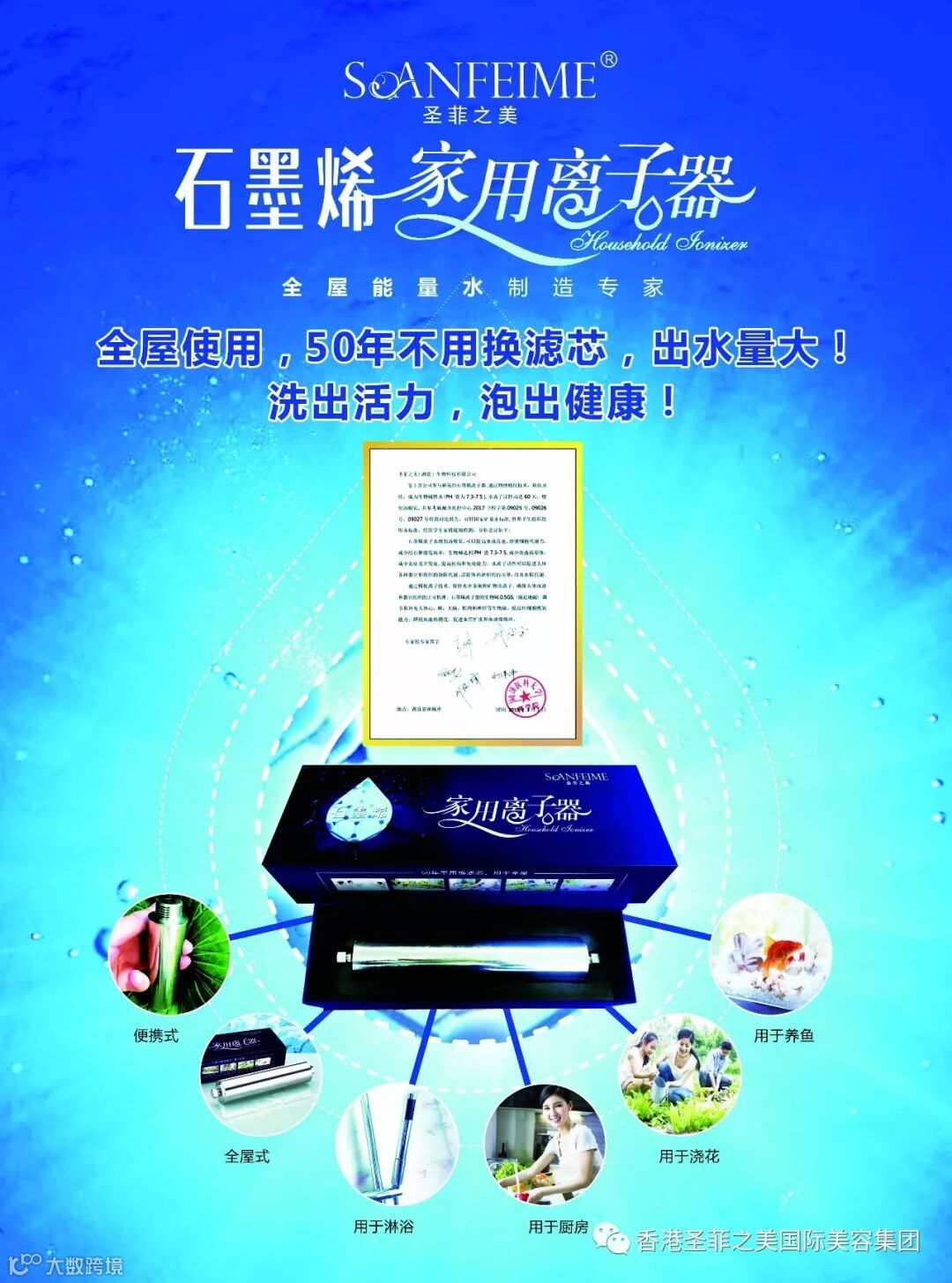 面对如何改善家庭用水环境,越来越多的家庭形成了健康、全面的居家用水概念,随之圣菲之美石墨烯家用离子器的面市备受青睐!