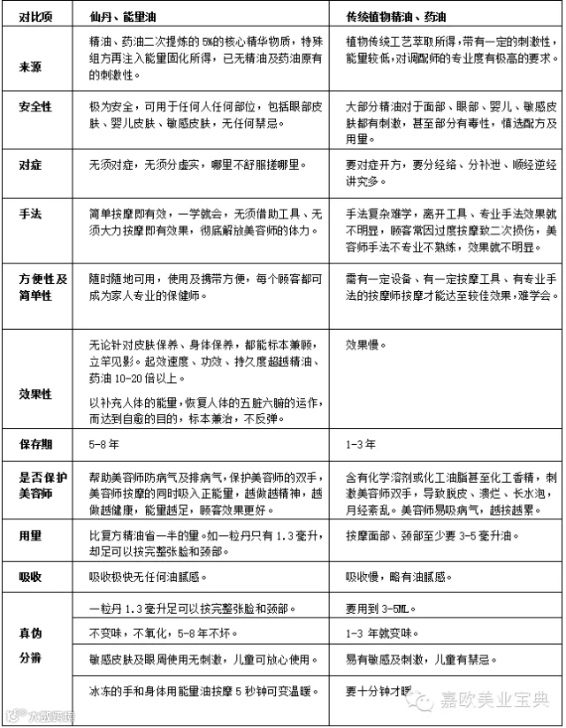 四、华香龙能量油、仙丹和传统的植物精油、药油的区别: