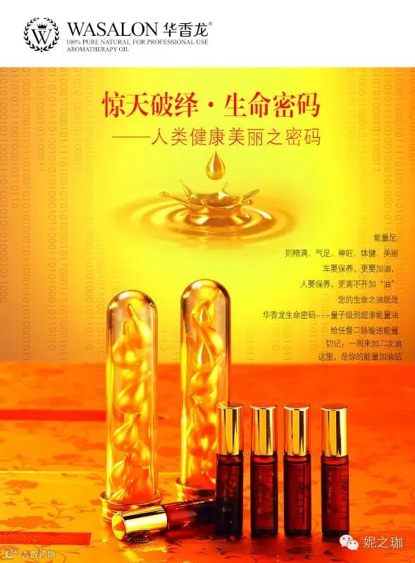 华香龙能量丹:是从极品FCC有机植物单方精油当中,透过世界先进的技术提炼,把其仅含的5%最精华、最有效、分子量最小、最安全的成分提炼出来,把植物精油原有的刺激性、毒性、杂质、多余的成份去掉,所得的精华素量小高效,绝对安全,无任何禁忌。100公斤纯植物单方精油,只能提炼出如果用相机来形容精油,传统精油、药油就是旧时要放胶卷的相机。对专业及技术有高要求,使用麻烦,不方便,禁忌多,效果不尽人意。能量油就是数码相机,方便、安全、简单、高清、效果好。