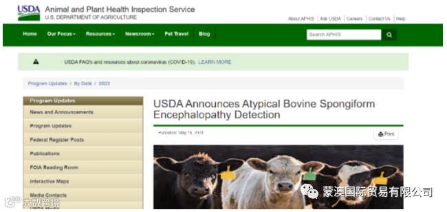 美国农业部5月19日宣布,在美国南卡罗来纳州发现了美国有记录以来第七例被确认的疯牛病病例。美国上一次发现非典型疯牛病病例是在2018年。