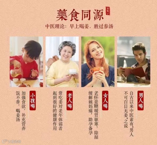 肥胖,身上湿气重、小肚子大,每天喝上一小碗,微微出点汗,浑身舒坦;因为姜是温中去湿、散寒化瘀之物,可活血祛湿、暖身散瘀,轻身益气;