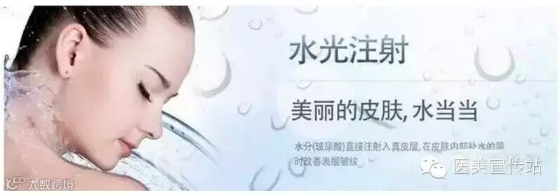 水光注射是把透明质酸(水分)直接注入到真皮层,使皮肤充满水分、改善皱纹、恢复弹性,达到抗衰老的功效。水光注射的核心成分就是透明质酸,在皮肤内吸收并储藏本身重量的1,000倍的水分,因此让皮肤维持水润柔嫩、光泽透亮。此外在韩国,水光注射被明星、博客达人、审美专家之间称为最受欢迎的抗衰、补水项目。