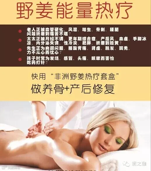 华香龙FCC姜油:为有机种植的姜,体积小,热能强劲,用先进的超临界工艺反复精提,油质达到药用级别,含有高浓度的姜酚及姜辣素,刺激性及杂质成分已被分离。它的分子量比人体皮肤细胞小1000倍,能透过表皮渗透到关节及筋骨深层,生姜的有效分子可以在5-7分钟沿着毛细血管壁进入血液循环运行全身,起到舒筋活血、通畅淋巴、驱风散寒、排湿解毒之功效。由于其热度是普通干姜粉的400倍以上,能量巨大,能源源不断补充热能,护理后全身至腰腿能持续热8小时。