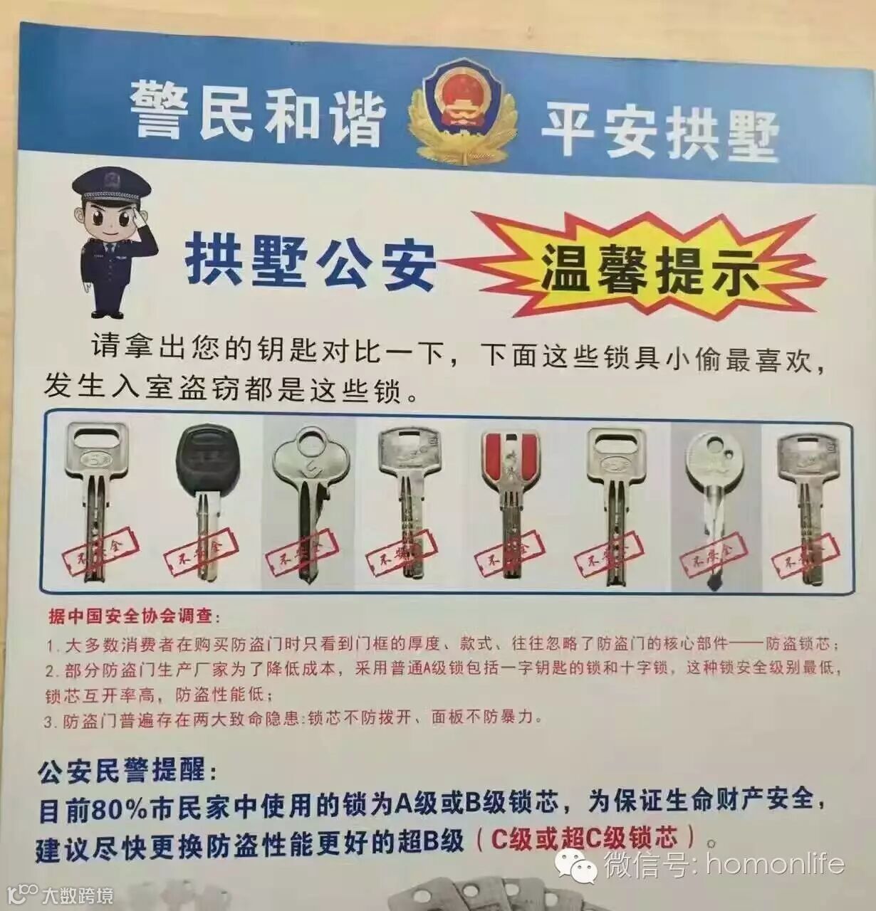 呐,民警叔叔都建议大家换超B级/C级锁芯了,曼哥给大家推荐的高性价比指纹锁都是这种锁芯,装上之后人家的钥匙就开不了你家的门了