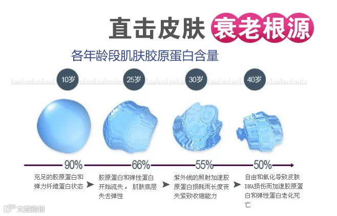 假性皱纹为浅表性,随着面部表情的变化而产生,通过长期使用护肤品可以得到一定程度的改善。而随着年龄增长,胶原蛋白流失,真皮层支撑纤维结构弱化,造成皮肤松弛,形成皮肤表面上的凹陷,也就是真性皱纹。