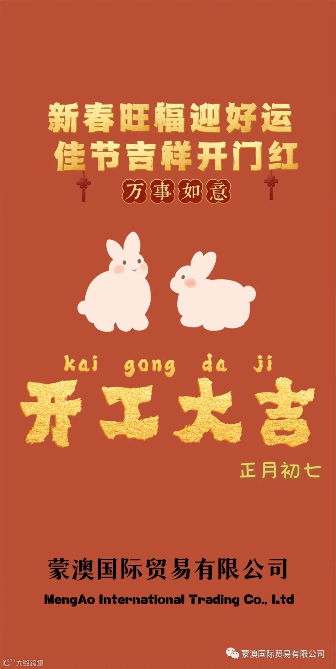 送走了一年的辛劳与忙碌,我们以崭新的面貌迎来开工的第一天,蒙澳国际贸易有限公司恭祝大家开工大吉!