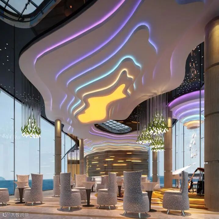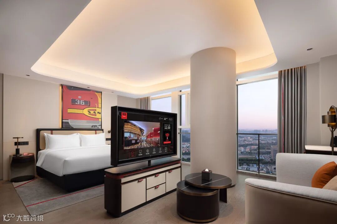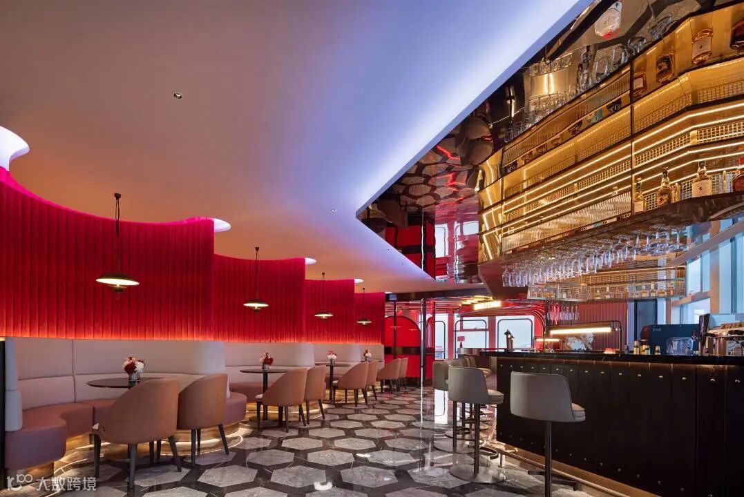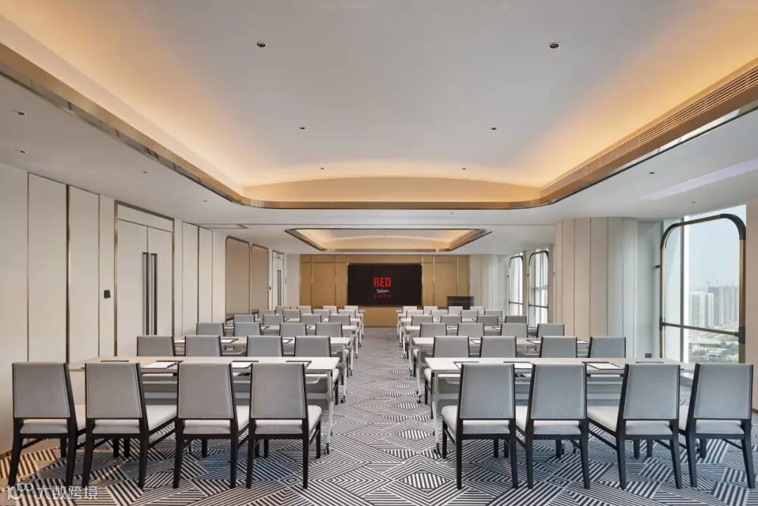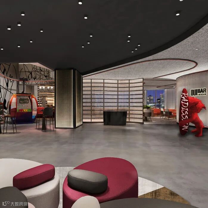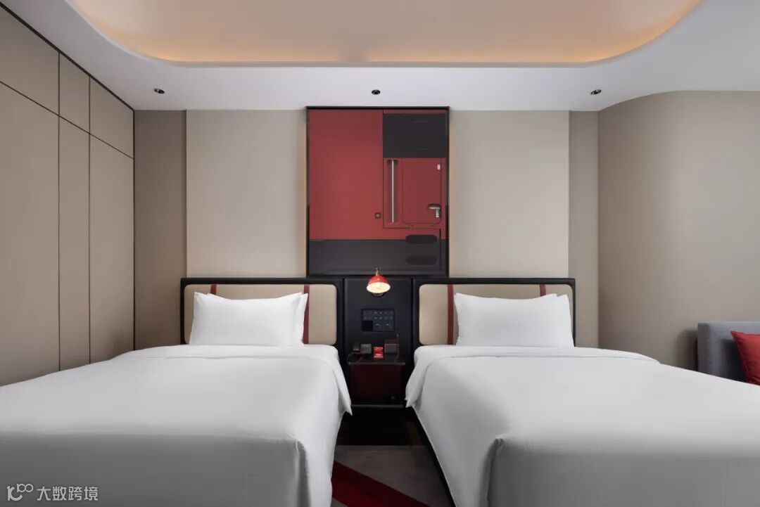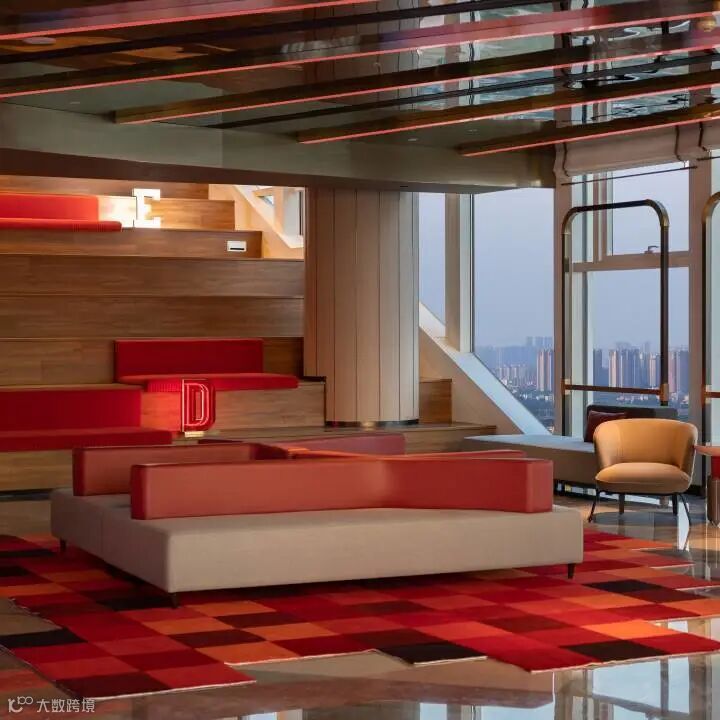 以“怀旧火车站”为核心设计元素,将复古元素与现代文化设计完美彰显。酒店以火车站乘客中心为灵感,伴随如同亟待启程火车的放射状灯带,置身其间,似已进入一段回溯时光之旅。酒店走廊,纵深感十足的设计,搭配多样线条、红绿交错,则构出一个虚实交错、通往未来的沉浸式时空隧道,带领宾客体验美轮美奂的光影盛宴。