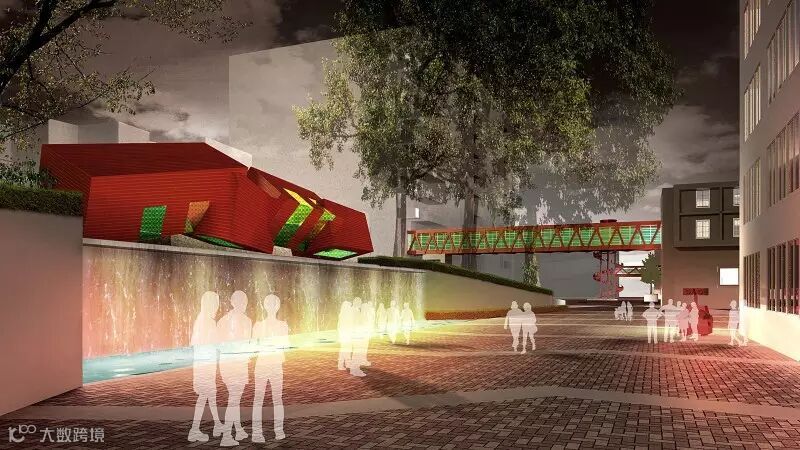 原概念以极具中国特色和张力的红色为主色,贯穿整个园区的设计,以指示牌系统、雕塑等形式出现。在提取传统元素的同时,加入新颖的现代元素,前卫与传统的有机结合,反衬和突出两者的独特魅力,令园区气氛更具张力和品位。