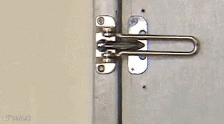 利用特殊塑料拨片伸进门缝,下拉把手开门!