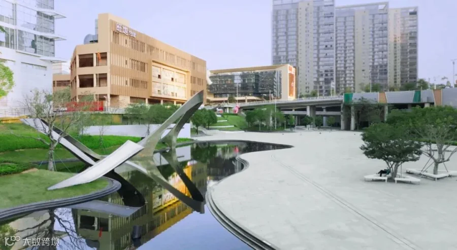 在景观设计方面前广场通过阶梯式步道巧妙解决高差,同时创造出独特的景观布局。梯田式绿化设计既美化了空间又模拟了山谷的起伏,给城市带来宁静与和谐。从商场到公园,绿意环绕,为亲子提供了欢乐的慢时光。