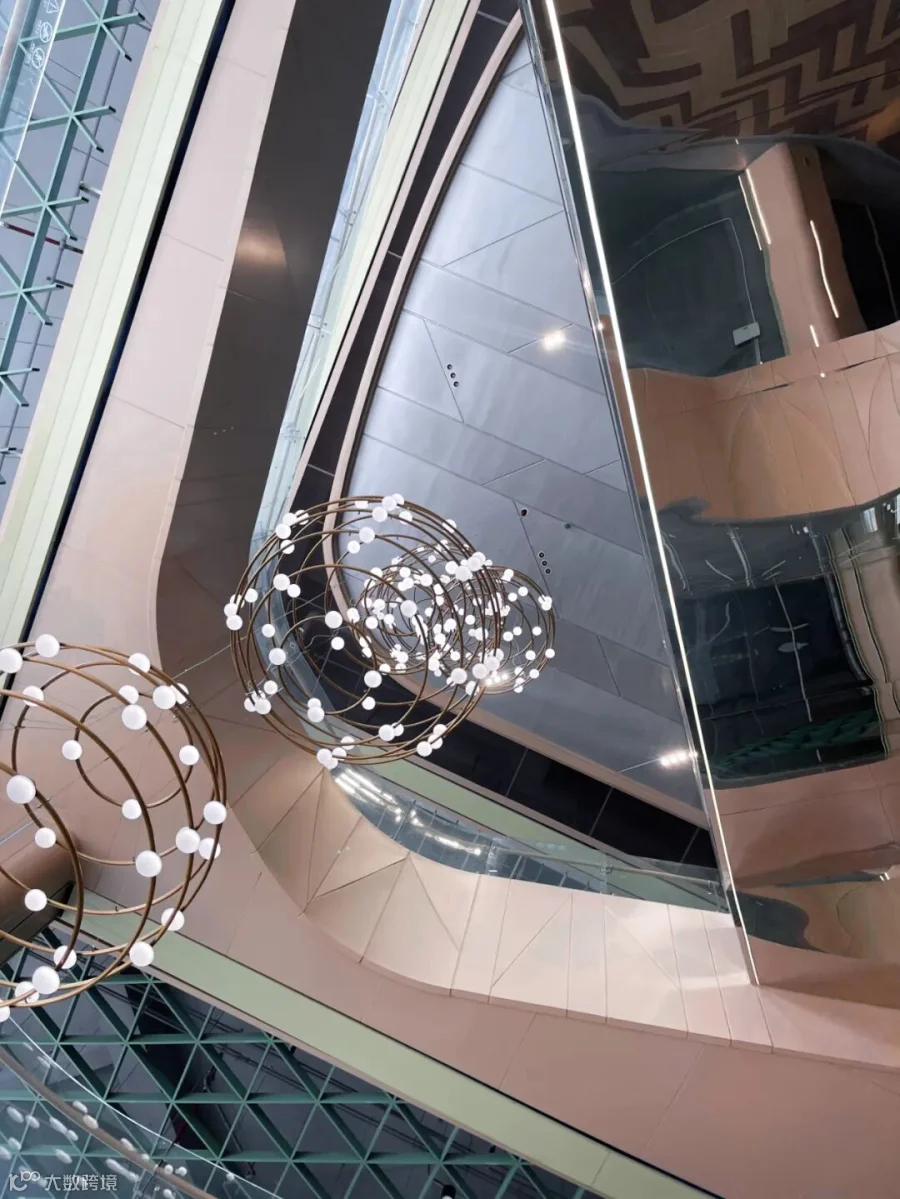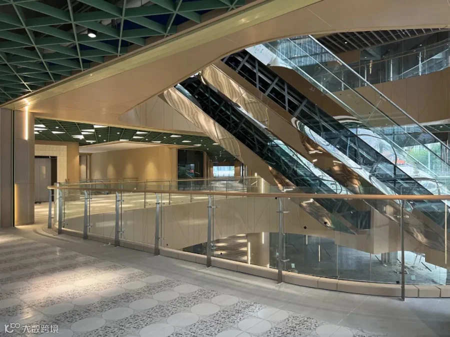 在建筑设计方面商场采用铝合金竖条幕墙外立面,配合半户外开放式阳台,简约线条作为主建筑语言,巧妙融合自然地势,打造独特“峡谷延展 堆叠自然”概念,高街外置扶梯直通公园,打破商业与公共空间界限,成为万博CBD的标志性建筑。