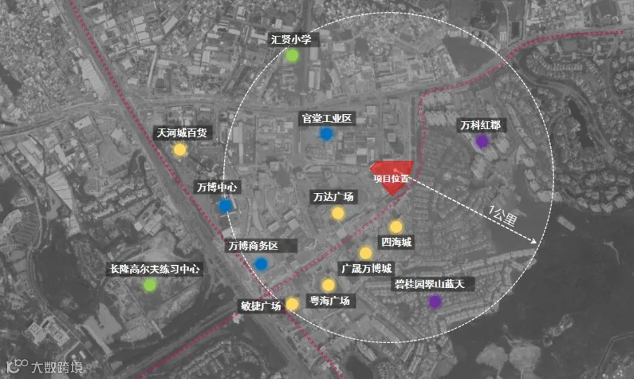 项目周边汇聚了万达广场、四海城、粤海广场、广晟万博城等多个大型商业购物中心,以及万科红郡等高品质住宅区,形成了一个成熟且繁荣的商业和居住环境,为项目的发展提供了得天独厚的优势。