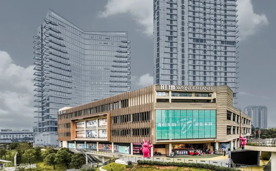 旺地WONDERLAND作为华新集团联手香港青创2023年的重点标杆商业项目,地处广州番禺万博CBD商圈核心的16,000㎡商业综合体。自2016年建成以来,该商业综合体虽已矗立于此,但其建筑立面逐渐显得与时俱进,缺乏现代商业气息。