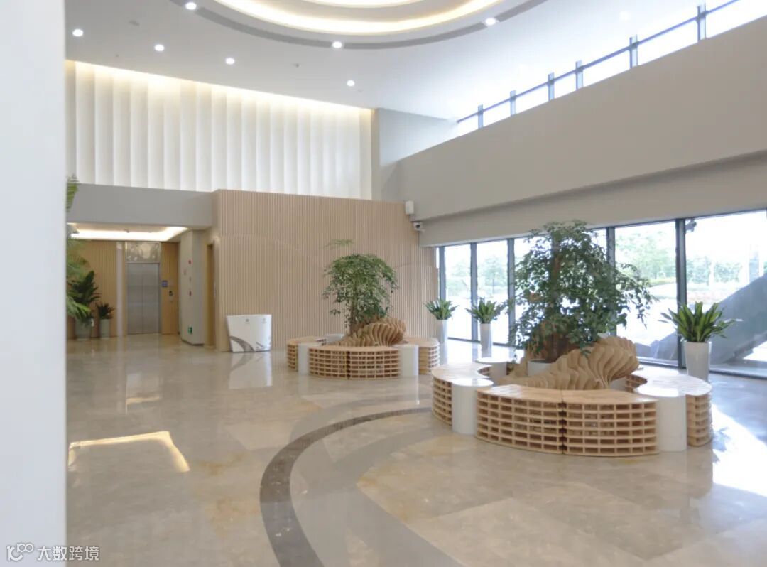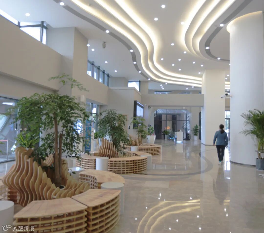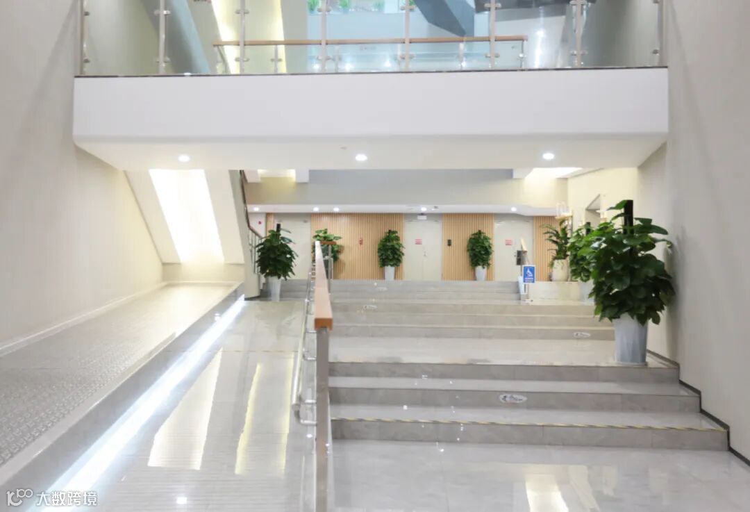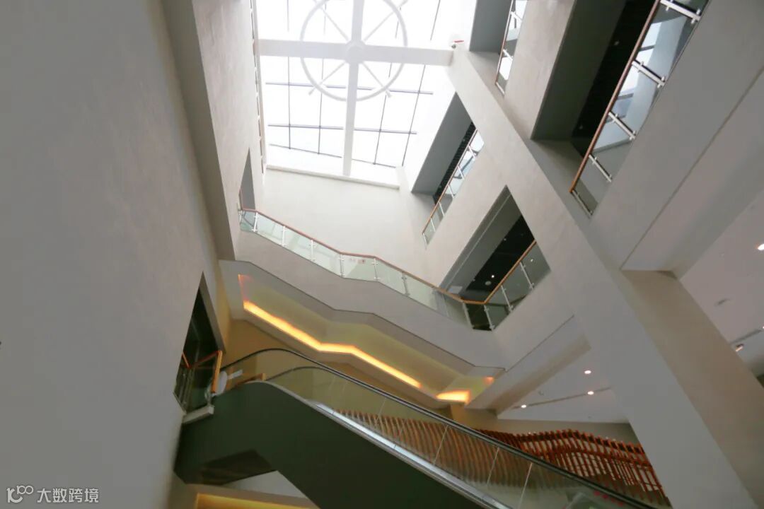 中庭连接一层到顶层的柱子巧妙运用渐变设计,恍如瀑布流水一泻而下。