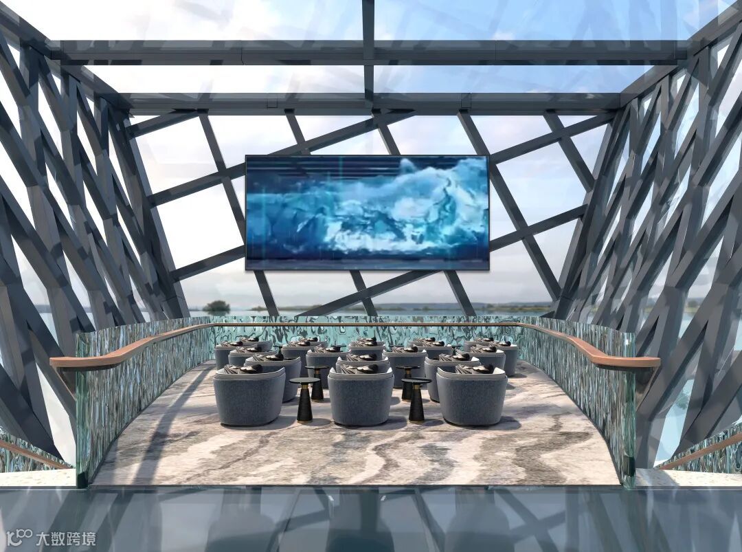 设置于博物馆“船头”中空的会议室,户外景色透过玻璃一览无遗,犹如置身船内控制舱,航行于大海上,更有氛围感。