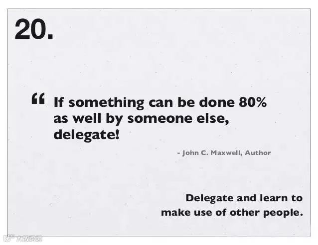 20、授权并擅用他人的力量。—君子善假于物(人)也,如果某件事其他人也可以做到八成,那就给他做!