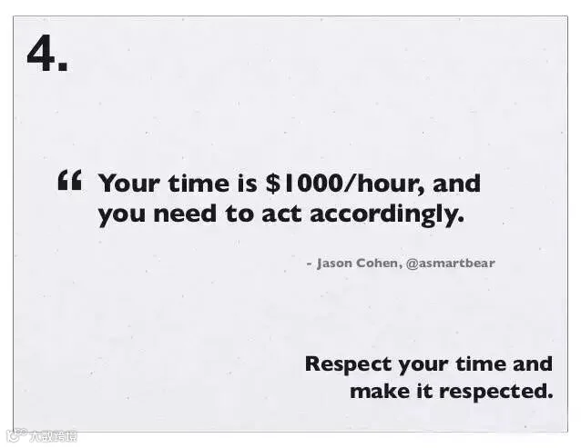 4、重视你的时间,并使其值得重视:你的时间值 1000 美元/小时,你得动起来。