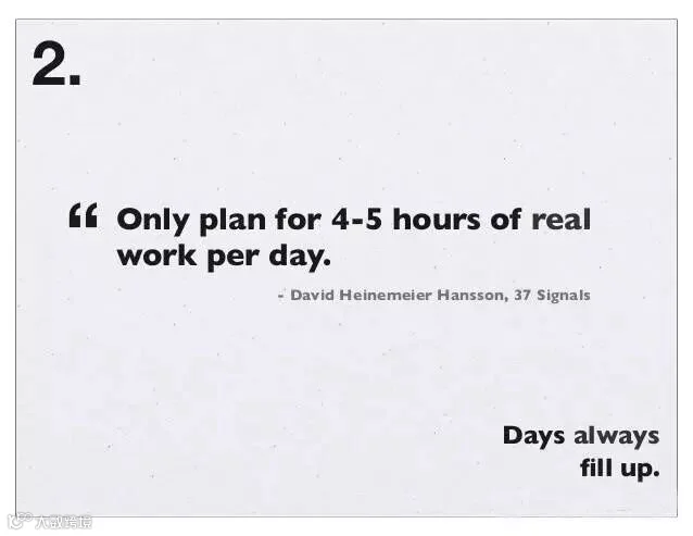 2、时间总会有的:每天只计划 4~5 小时真正的工作。