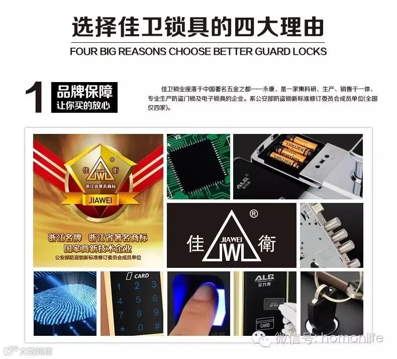 金华佳卫安防科技有限公司是亚萨合莱下属的一个子公司,主要集中科研实力,进行指纹密码锁的研究开发和生产。十年磨一剑,推出了领先全球的佳卫指纹密码锁。该锁在国内同类产品中技术含量高,安装简单,使用方便,安全稳定。模块化可插拔的控件,方便了日后的维护和升级。该产品属于国际领先,国内一流的水平,保护您家园的安全,悦享便捷品质生活。
