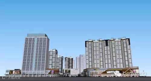 建筑类型:城市休闲广场、高级商务酒店和写字楼、大型购物商场、住宅