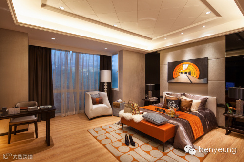 销售中心二层附设电梯,直达十八层实体样板房展示空间。样板间从设计意念、整体规划,到选材及细节处理均经过细心考量,以简洁大方的设计手法配以时尚的软装,体现了现代人对品质生活的追求。B2户型以优雅的米色和褐色为主色调,辅以饱满的橙色点缀,时尚中突显高贵。厨房采用开放式设计,与客厅相连,增加空间实用性。