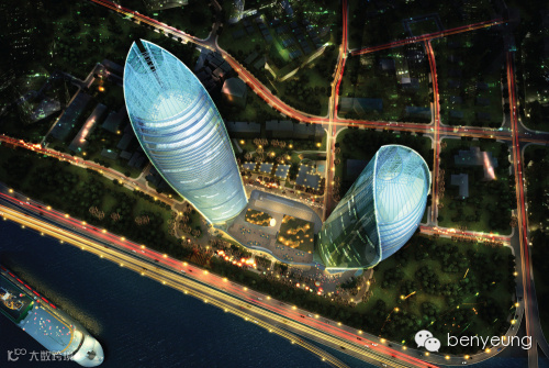 本案的外形借鉴了风帆,并融入了海浪的视觉元素。两座塔楼状如风帆,迎风屹立,其对称结构,在取得简洁、纯净效果的同时,增强了建筑的表现力与秩序。玻璃幕墙上的几抹深蓝设计灵感来自微波荡漾的海面,强调了厦门临海的地理位置。裙楼的波浪造型与海边的细浪互相呼应,使整个建筑充满立体动感。