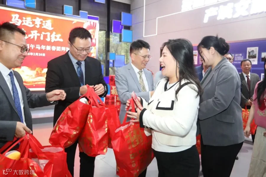 在一楼的“宏达智空间”展厅,集团董事长黄沃、总裁张萌及高管领导团队一起为大家送上新春福袋。