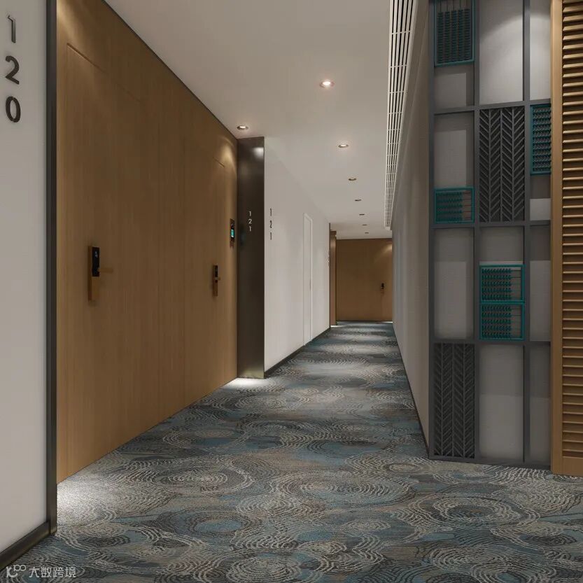 客房电梯厅的墙体饰面以怀旧的算盘作为装饰,隐约地还原了旧时代的风味;客房号码牌灵感源于中国影戏,以镂刻透光的手法展示房号,为游览增添趣味感。