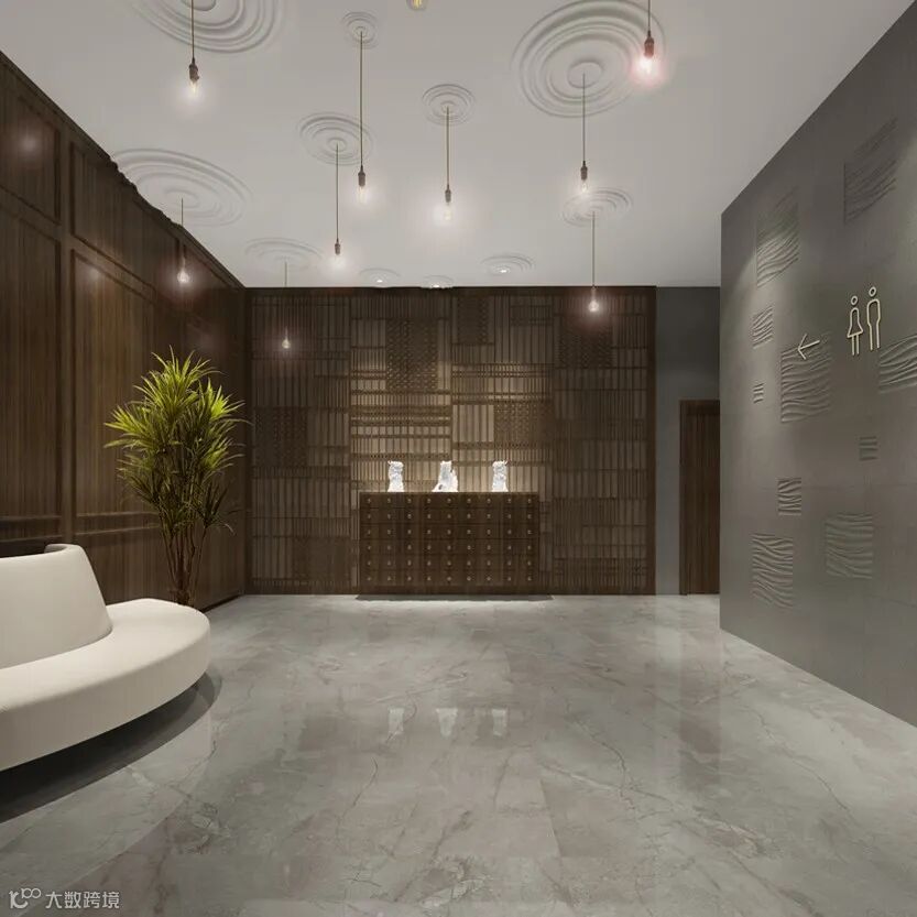 ∆ 二层过厅及宴会厅 | 竹笼造型与海浪造型灯饰