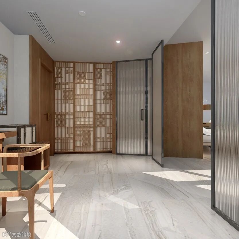 其中花园套房突破传统客房一览无遗的平面动线设计,以长虹玻璃为入户屏风,既增强空间的隐私性,又让游览的惊喜可以逐步登场。开放性地将浴缸置于卧室一角,在良好的日光照射下,房间也拥有更多的呼吸空间。套房直通户外花园,全落地玻璃使空间更为通透和舒展。