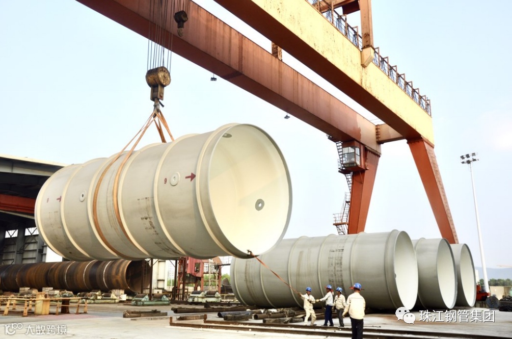 古语有云:上下同欲者胜。针对该项目超大管径(φ4800mm-φ6400mm)、大径厚壁、尺寸精度要求高(长度偏差±5mm,椭圆度偏差≤14.5mm)、占用空间大、转运难、防腐难度高等特点,珠江钢管珠海公司行动迅猛、科学合理地组织优质的生产资源、充分调动各相关部门及人员的工作积极性,从设备设施保障到生产布局,从工艺方案制定到安全、质量保证,整个项目组的人员始终团结一致、斗志高昂,一步一步地克服了长度、椭圆度等尺寸难题;加径环采用自动埋弧焊焊接,极大提高了生产效率;浇筑孔采用仿形切割,大大改善了浇筑孔尺寸精度;公司秉持“高标准、严要求、高质量”的质控原则,重点投入自主研发、制造严控尺寸精度和辅助附件安装的工装十几套。这充分体现了珠江钢管拥有深厚的技术底蕴和高超的建造工艺, 也体现了珠钢人不畏艰难、孜孜以求、精益求精的工匠精神。
