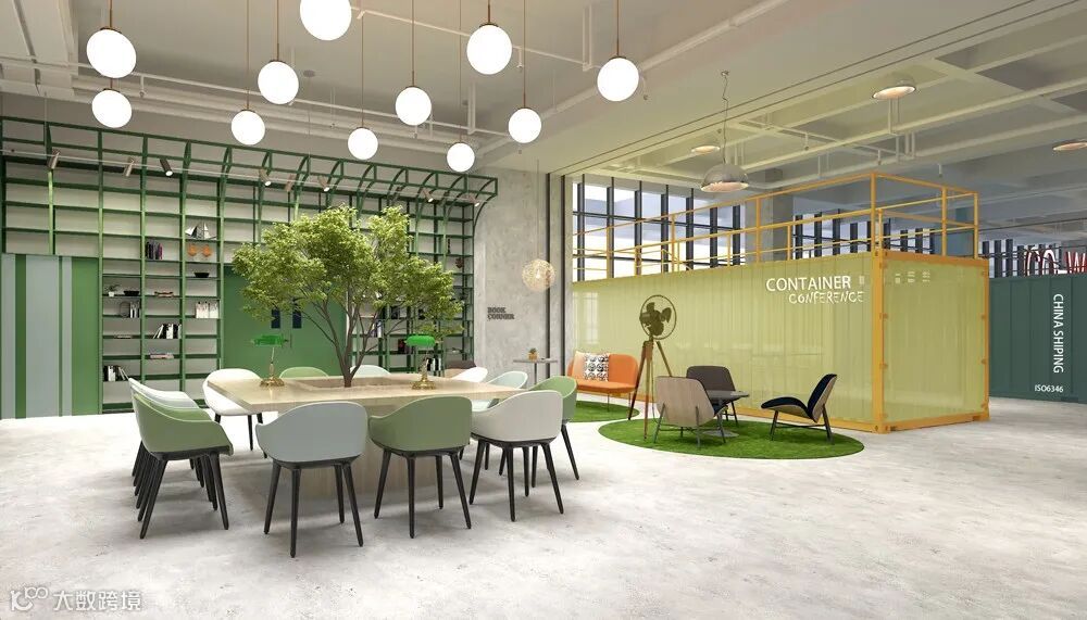 除標準辦公室外,二層辦公區域別具一格地設計了集裝箱主題區和LOFT辦公室,即將投入使用。