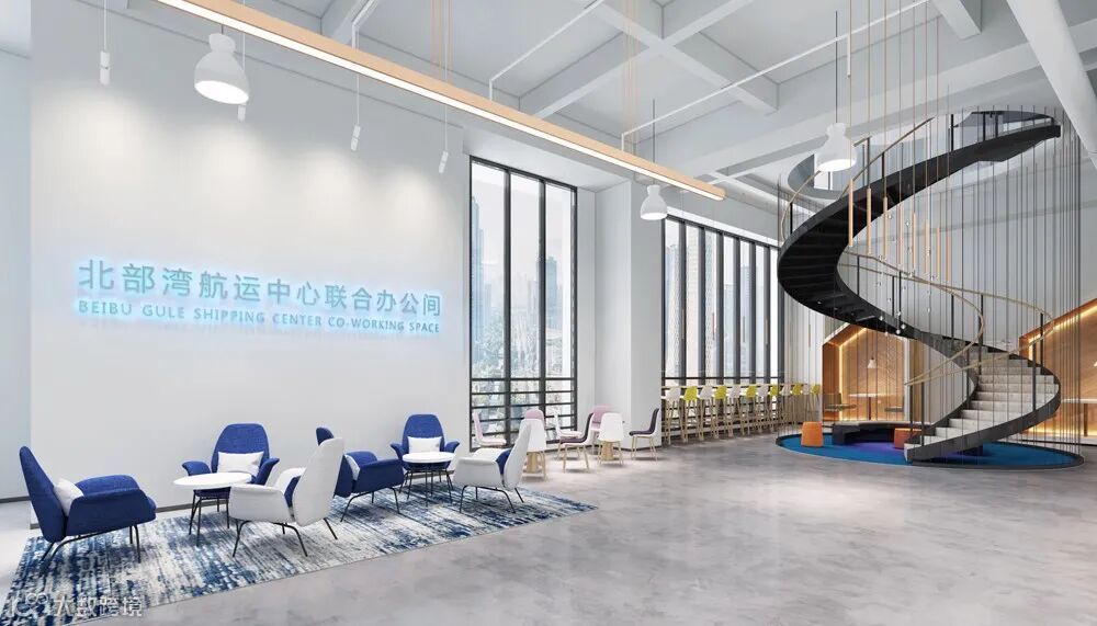 北部灣港集團創意聯合辦公空間集辦公、商務、休閒、娛樂配套功能於一體,由北部灣港集團開發,是為港口、物流、貨主、貨代、船代、船公司、行業協會以及SOHO一族量身打造的辦公區域。