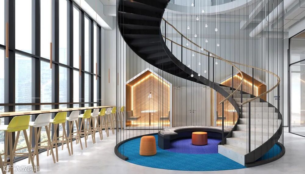 三層打造更豐富的層次與動線, 開放辦公室與獨立辦公室動線明確,創造通透的開放空間,鼓勵人們在這裡合作互動;獨立辦公室設置多層屏障,滿足私密需求。