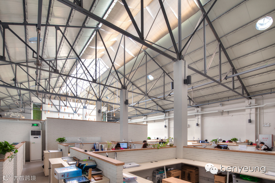 公司办公室在旧有厂房空间的基础上利用钢结构加固,保留浓厚的工业味道,同时以简洁前卫、自然采光、绿色环保的理念为团队打造现代舒适办公空间,以高质量的工作环境让团队专注于优化项目成果。
