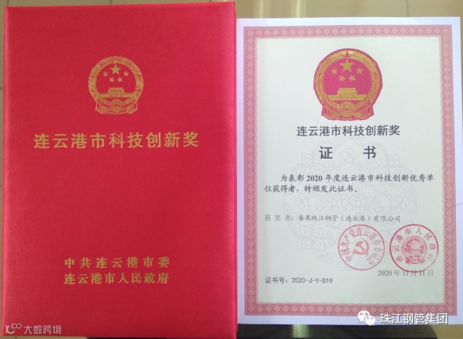 近日,番禺珠江钢管(连云港)有限公司荣获“连云港市科技创新优秀单位”称号。据悉,此奖项系连云港市首届评选,由市科技创新评审委员会组织实施,旨在进一步加快推进创新驱动发展战略,贯彻落实《江苏省科学技术进步条例》。