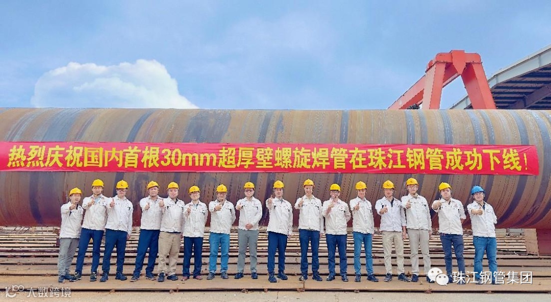 珠江石油天然气钢管控股有限公司(股票代码:01938.HK)克服超大壁厚螺旋焊管制造装备及工艺技术难题,突破了螺旋钢管制造史上的百年极限,制造出全球首根30mm超大壁厚螺旋钢管,创造了全球螺旋钢管超大壁厚产品供应规格新的世界,标志着中国制造螺旋钢管的技术水平迈上了一个新台阶!