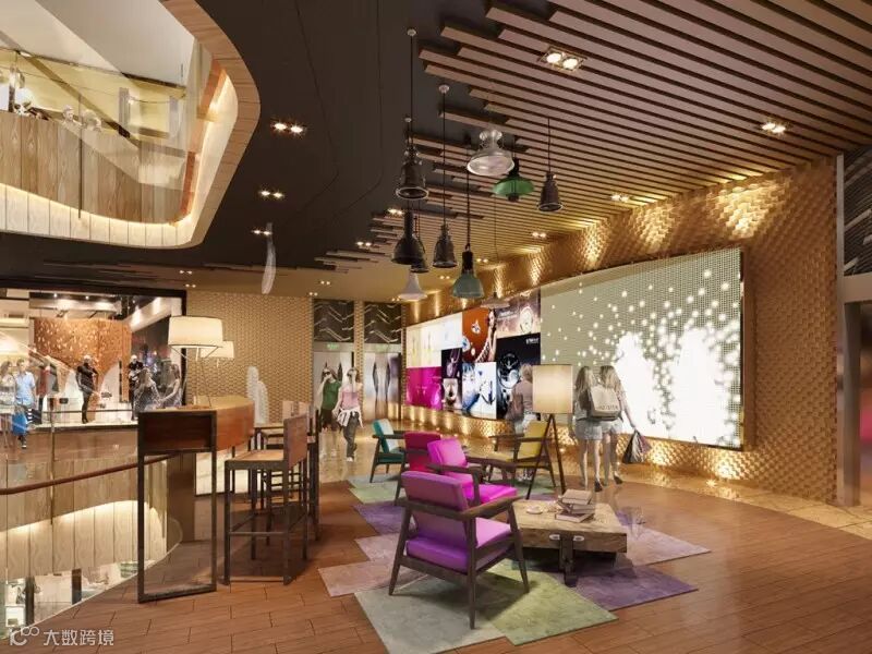 金色是项目的主体色调,也是K11品牌的主题颜色。从B1中庭,到各层背景墙,再到天花,随着空间的变化,柔和的金色仿佛溪流般流淌至空间的每个角落,突出项目的奢华高雅与其独特的艺术氛围,并强化人们对K11品牌的认知。