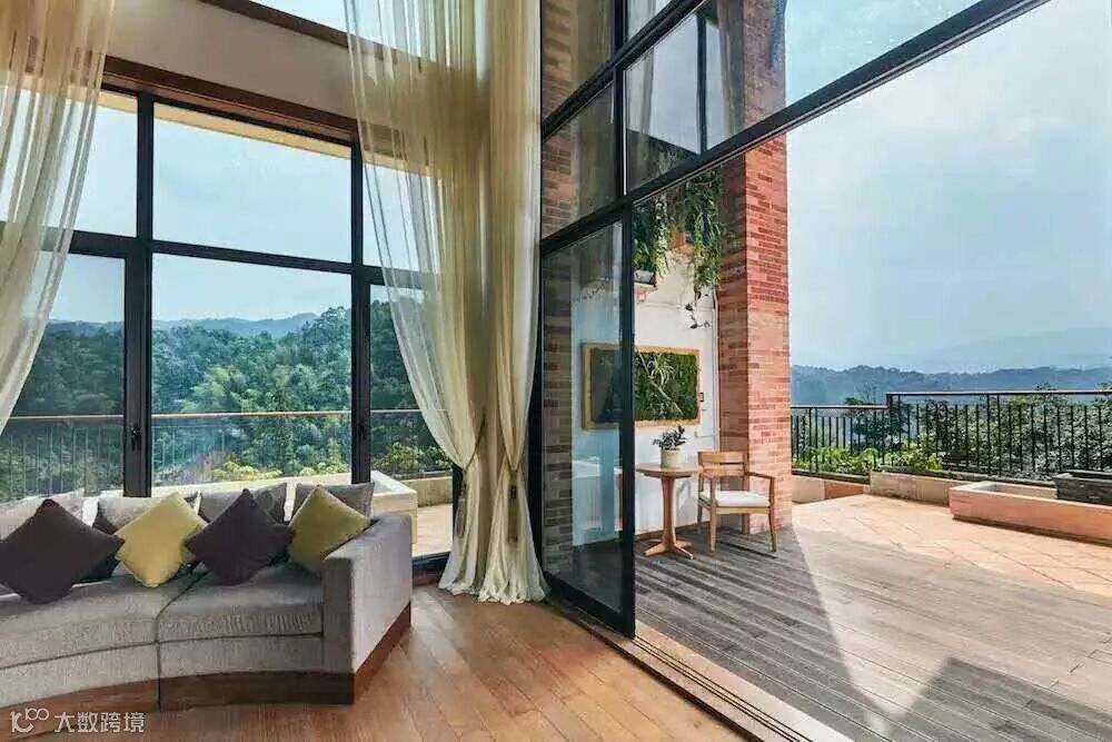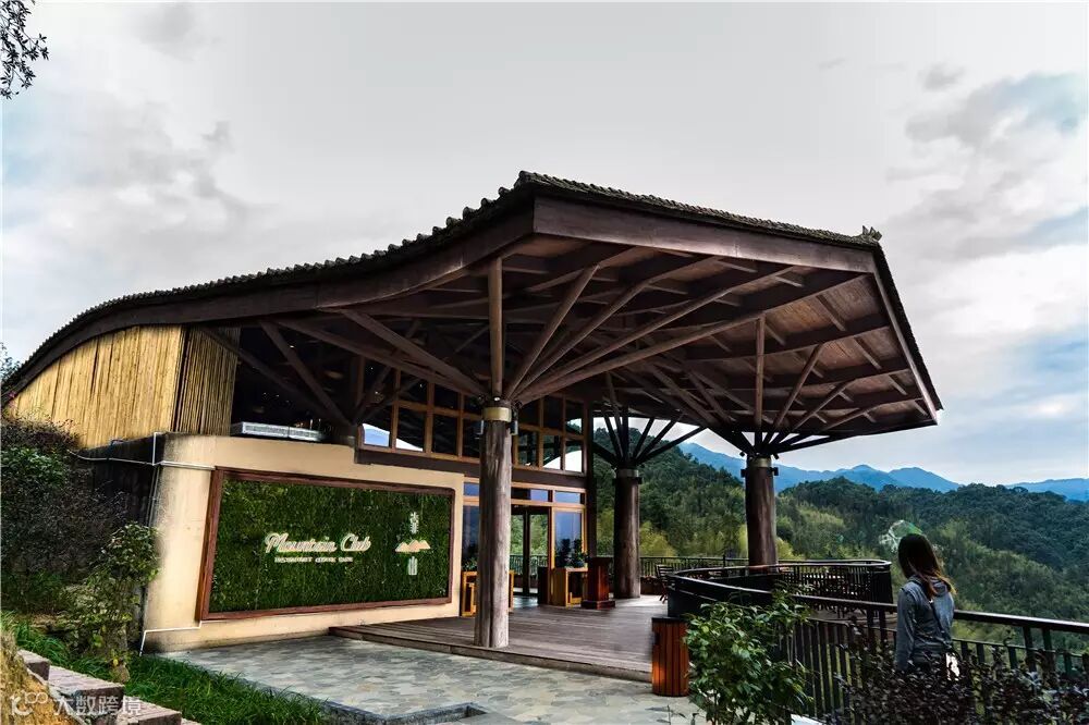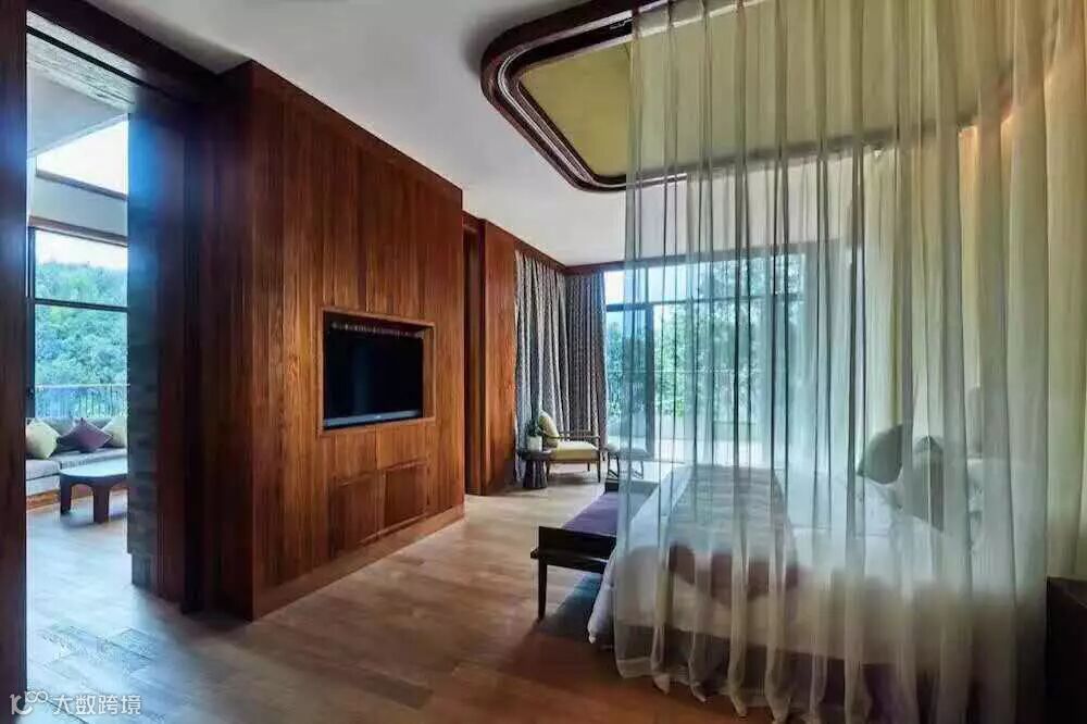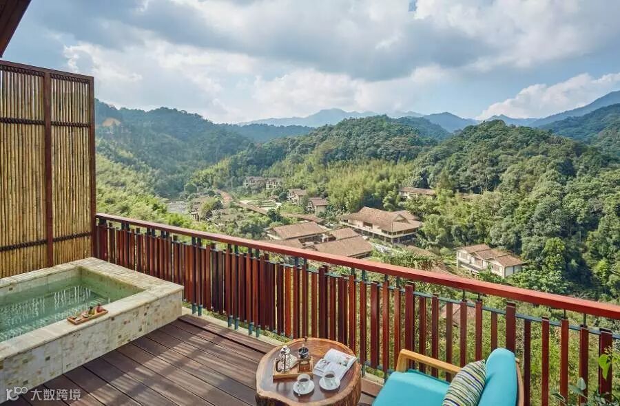 会所餐厅及树梢春芽别墅由byal与国际知名酒店室内设计工作室Brayton Hughes Design Studio 携手合作设计,统一运用木元素实现内外空间风格一致。别墅、会所及公共区域等空间采用现代的开敞式设计手法,既为体验者提供伸手可及自然的生态体验,亦为其私人空间提供天然屏障。房间设置了开敞式落地窗、特大私人露台和天然温泉泡池,将西方的雅致生活融汇于中国的传统文化。夏花秋实套房为复式设计,露天温泉泡池正望南昆山天堂顶,美景独享。