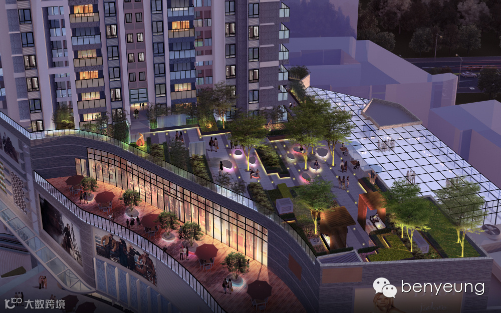项目融入全新港式生活理念,一站式(R+P)成熟生活配套,实现住宅与商业的有机融合,打造城中时尚地标式建筑。整体建筑设计灵感来源于城市的韵律与节奏。商场裙楼部分,外立面采用了曲线轮廓,运用现代拼贴手法,通过富设计感的组合,使整个裙房化为流动的线条,加强了空间张力。住宅塔楼部分通过简洁有力的色彩对比与错落有致的层次变化,丰富了空间层次感。