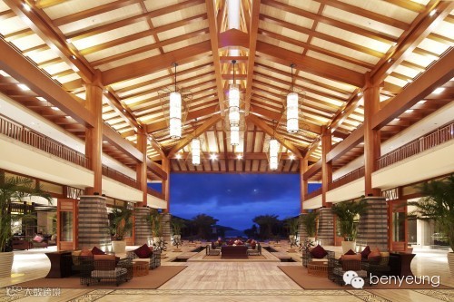 酒店外观设计灵感来自石梅湾湾区内的南国景观,通过巧妙布局,将棕榈树、铁树等亚热带植物错落有致地铺排,演绎当地独有的原始热带风情。