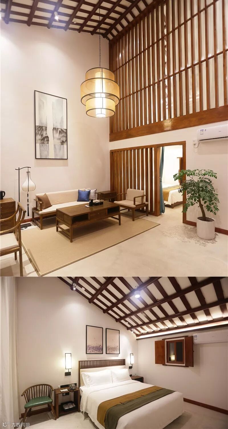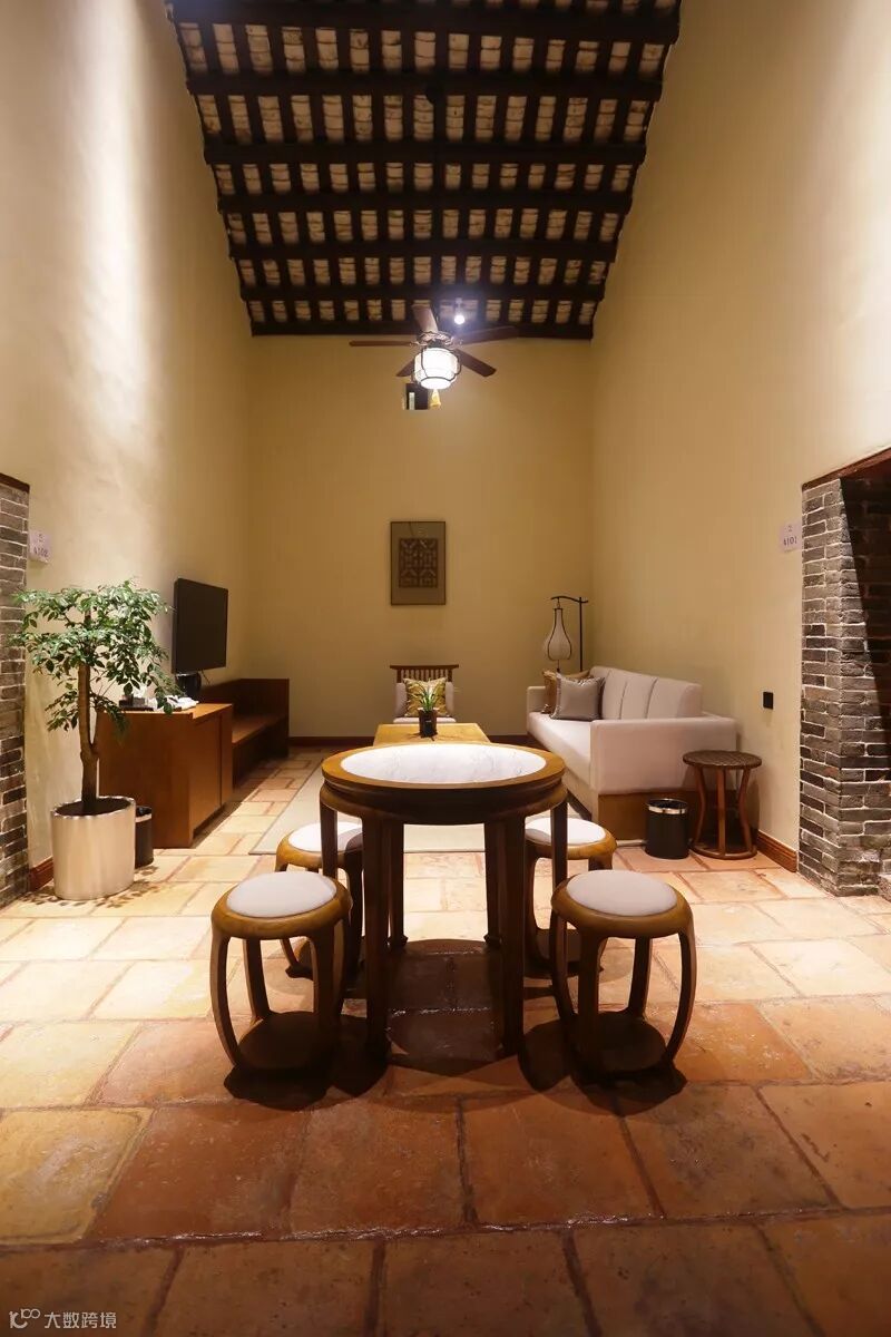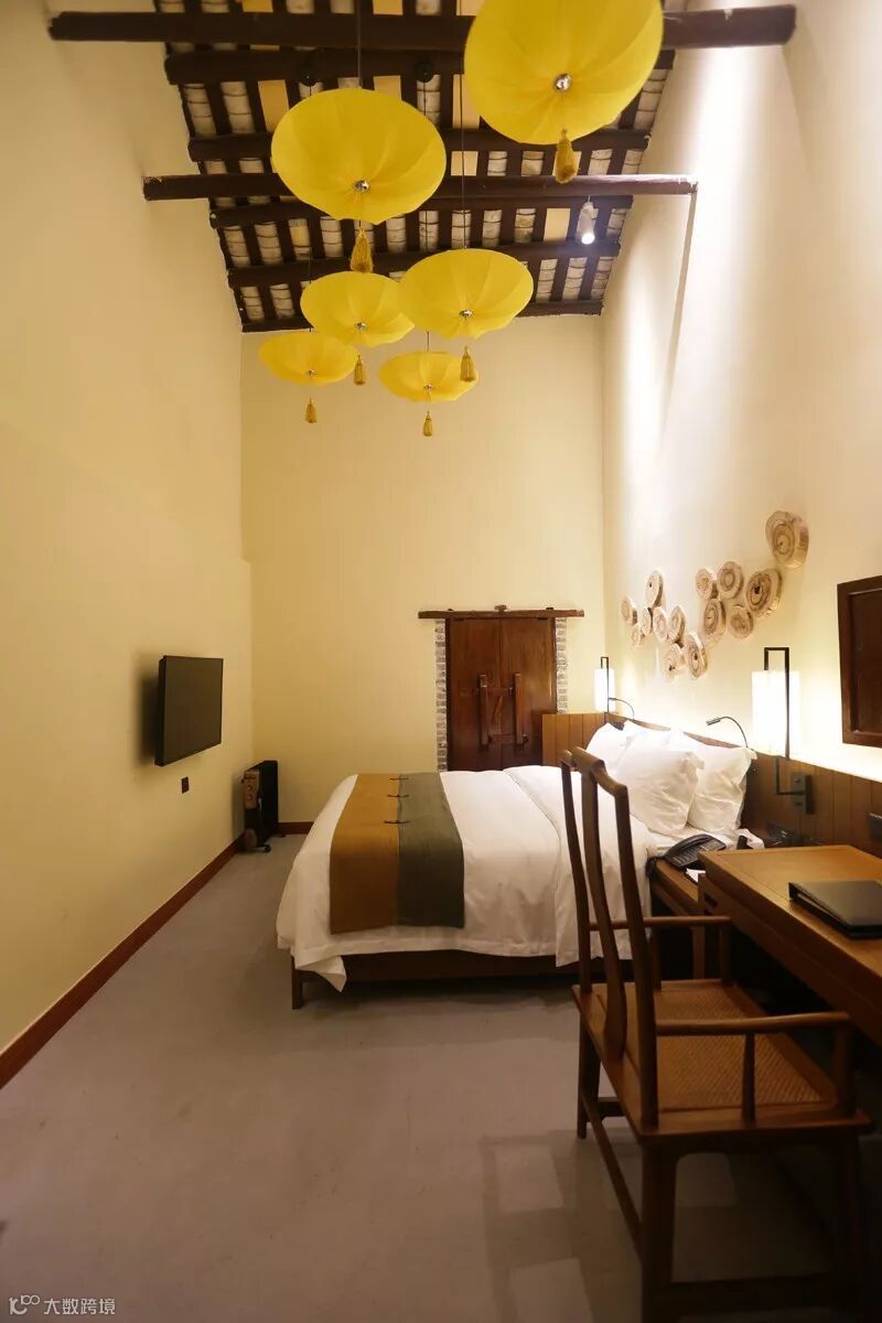 更多的是在原生民居的基础上以新并旧,将现代时尚融入岭南客家建筑风格之中。如酒店内的古典屏风、中式家具和灯饰等,都是在传统手工艺上增加了新的思考。