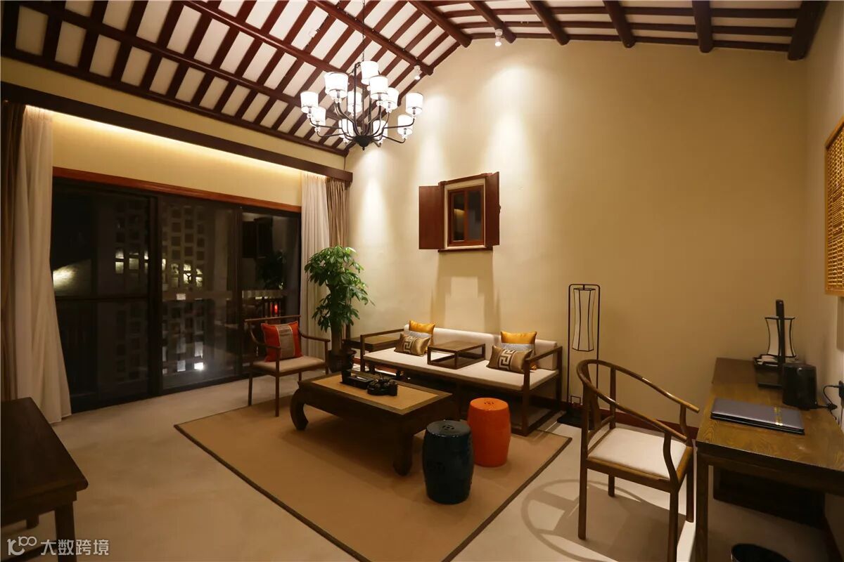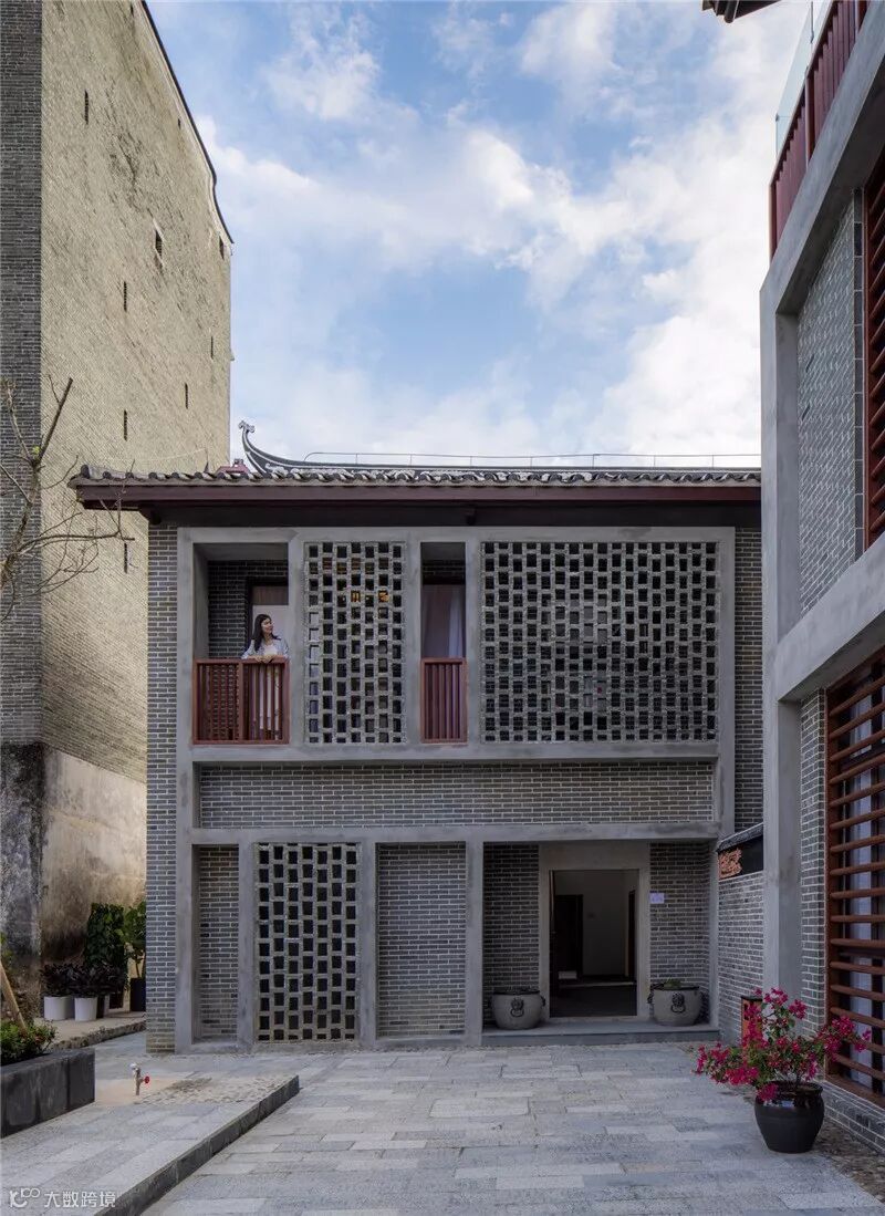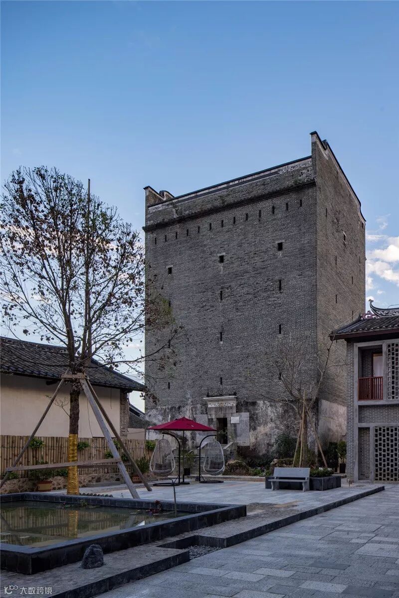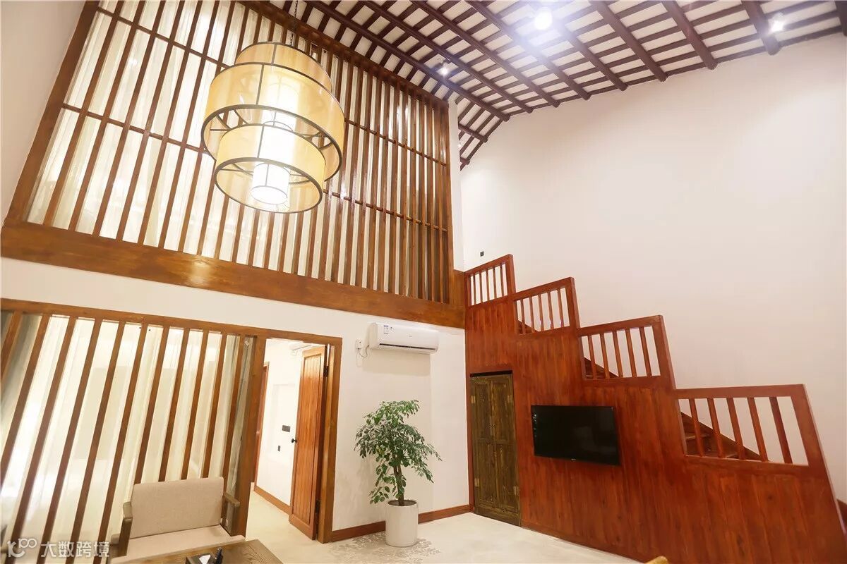 更多的是在原生民居的基础上以新并旧,将现代时尚融入岭南客家建筑风格之中。如酒店内的古典屏风、中式家具和灯饰等,都是在传统手工艺上增加了新的思考。
